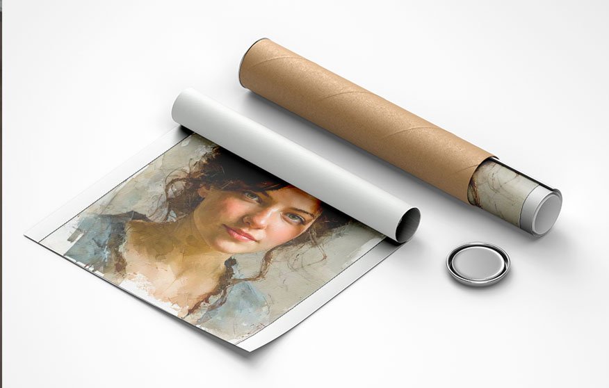 Artwork is carefully folded and placed inside a protective tube for safe, easy transport. Buyers can enjoy beautiful, high-quality pieces delivered securely, ensuring your art arrives pristine and ready to display or gift. Perfect for convenient, stylish delivery.
